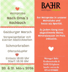 Bitte vorab reservieren. Karten online bestellen: Baehr-Weinladen.de